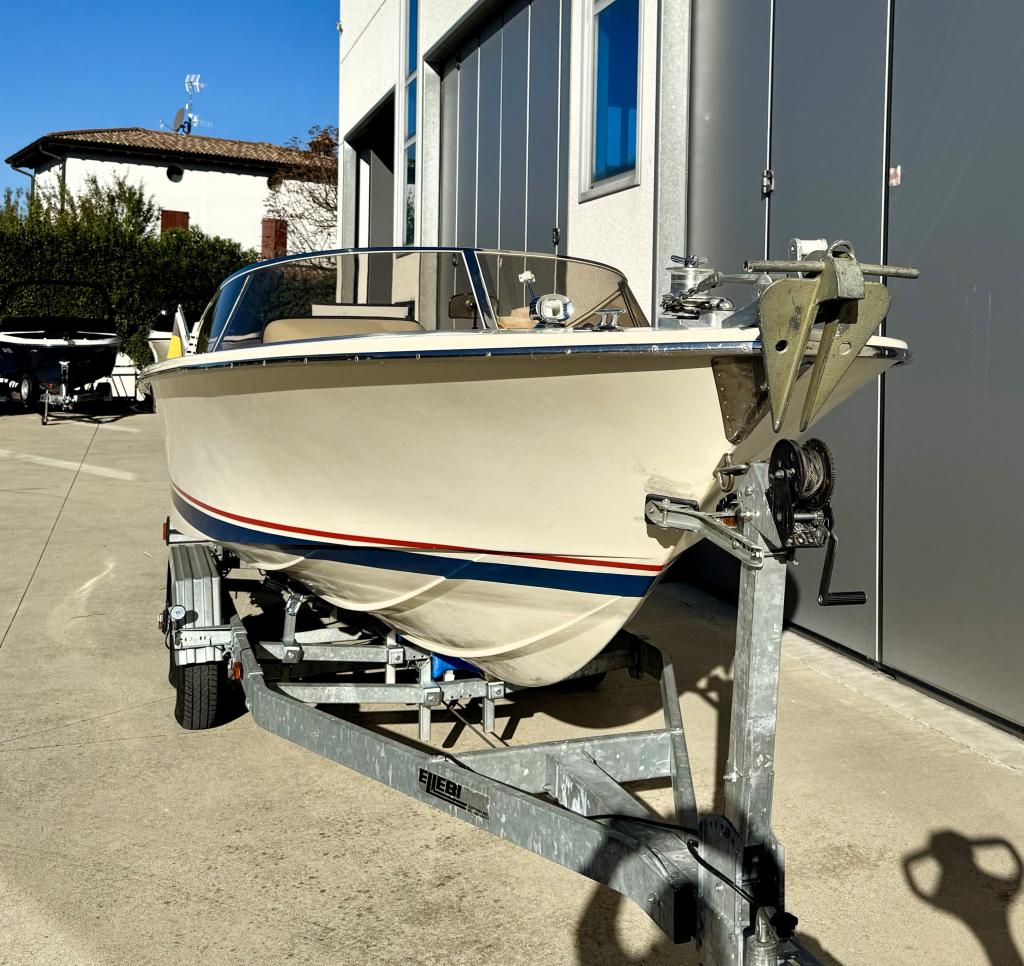 La barca viene venduta compresa di rimorchio Ellebi biasse.